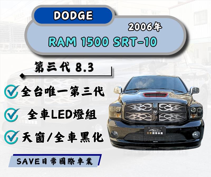 【廠牌】Dodge 【車款版本】Ram 1500 SRT-10 【年份】2006 【車色】黑 【燃油】汽油 【排氣量】8.3 【里程數】2萬 【開價】168萬8(歡迎私訊洽談)