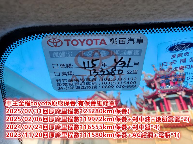 【車主全程toyota原廠保養,有保養維修單】.【已更換四顆米其林輪胎,輪胎年份2024年22週】