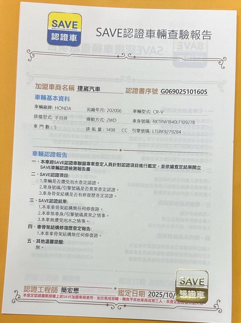 2020年 CRV 1.5 S版 導航 天窗 電椅電尾門 I-KEY 認証車 綠色