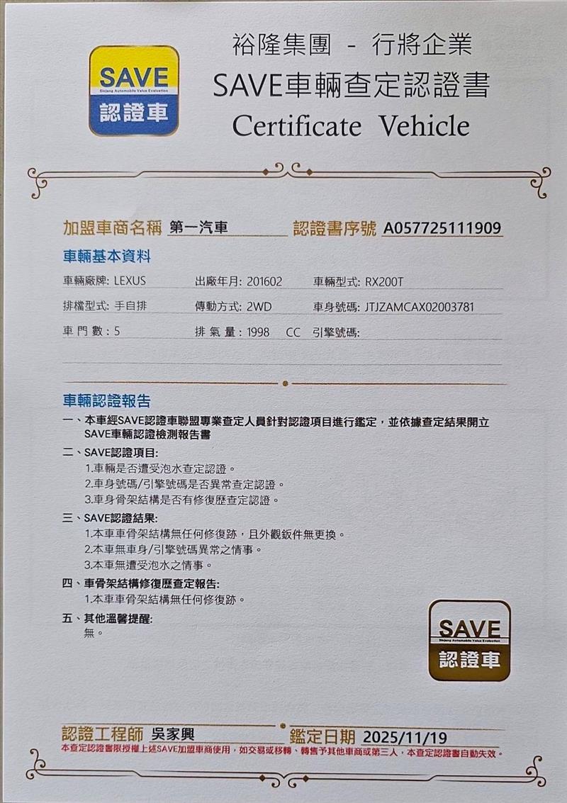 LEXUS凌志《最頂級旗艦版。RX200T  2.0cc渦輪版》