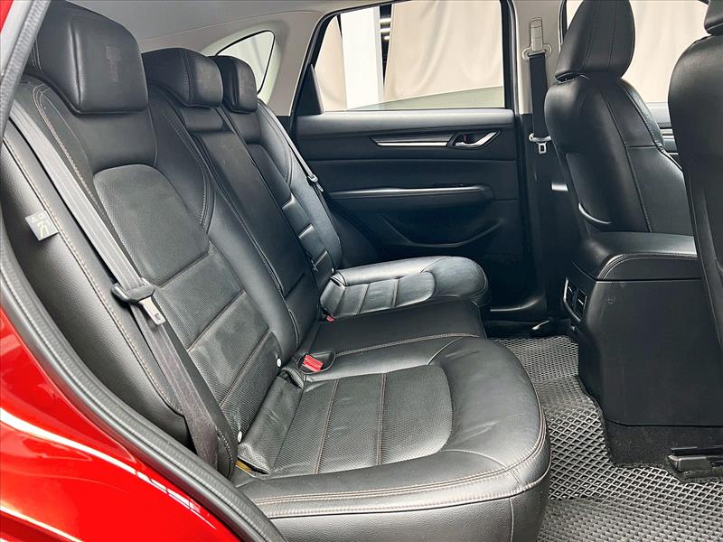 Mazda CX-5在車輛設計及質感上展現超越以往的精進之處。全新設計的19吋鋁合金輪圈,傳達出沉穩且成熟的視覺感受。座椅採用柔軟光滑的Nappa真皮材質,搭配雙前座導流式通風座椅以及電動調整功能,在提供細膩乘坐享受的同時,也能打造清爽、舒適及便利的乘車空間。更特別選用深色的內裝頂篷,與棕色座椅皮革相呼應,而實木飾板的配置,亦營造出融合溫暖感與現代感的精緻座艙氛圍。