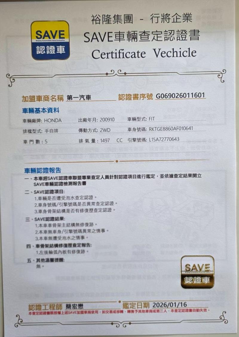HONDA 本田 Fit 《一手車。附SAVE認證書。頂級S版。加裝影音》