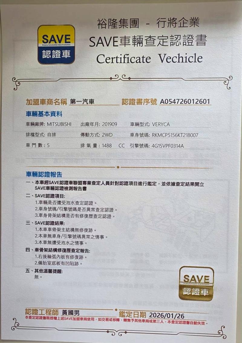 《一手車。附SAVE認證書。正八人座。超稀缺》車況極佳如新車。