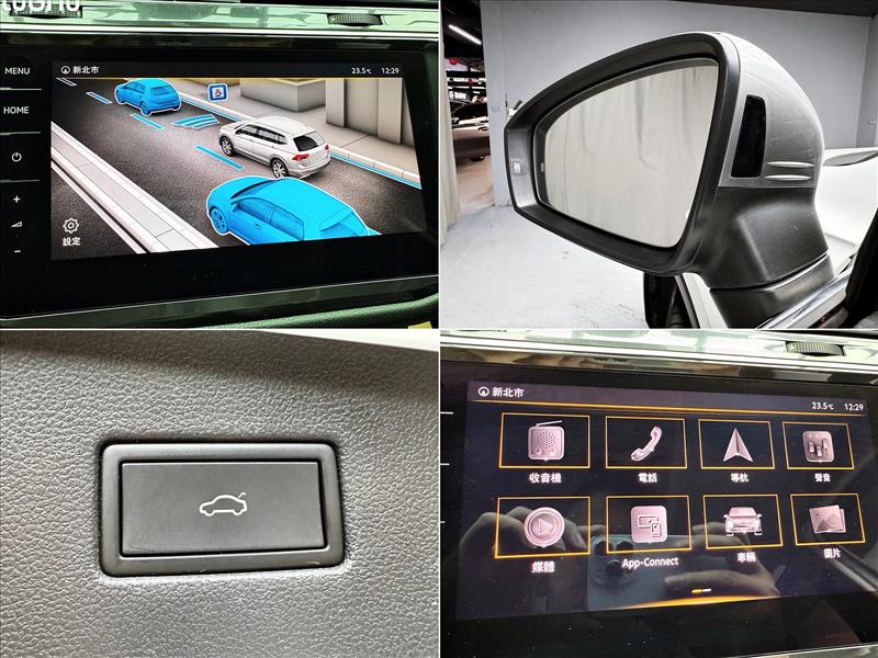便利配備:免鑰匙啟動車門鎖、定速巡航、蜂鳴式倒車輔助、前方駐車雷達、倒車影像、環景影像、自動停車系統、光感應自動頭燈、雨滴感應雨刷、電動窗防夾、電動尾門、電動折疊後視鏡。