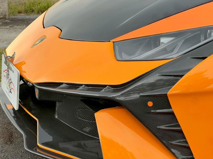 2014/15年式 LP610-4 改裝:新款小牛tecnica全碳纖維外觀 超炸排氣管 鍛造鋁圈 選配:橘色珍珠漆 Arancio Borealis/碳纖維陶瓷煞車碟盤/銀色煞車卡鉗/車頭抬升系統/前後停車雷達/倒車攝影/多功能方向盤/12.3吋全數位儀表/ANIMA 駕駛模式切換/雙色雙材質內裝設計/麂皮車頂篷/雙前座電動椅/怠速熄火 升級: CarPlay手機連結