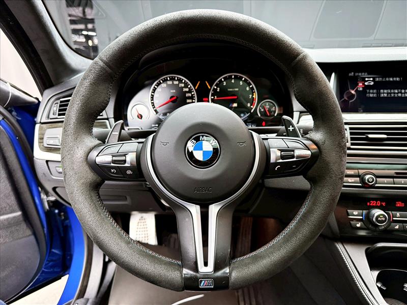 正2016年出廠 日規 F10 BMW 5-Series Sedan M5 4.4 汽油 金屬藍 雙渦輪增壓/V型八缸/後輪驅動/575匹馬力/引擎代號S63/DCT雙離合7速、左4右6/電吸門/雙前冷熱座椅/HUD抬頭顯示器/HK音響/麂皮M版方向盤/M版套件、原鈑件實跑7萬公里保證!